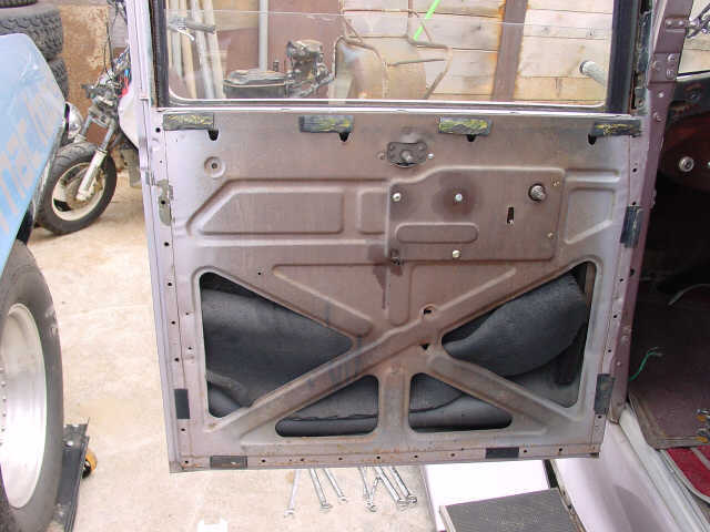 | しかし、ハッと我にかえってよく見れば、鉄板部分、ボディはドアを含めてまったく腐りがありません。 下回りを見ても欠損部分まるでなく、鉄板を切り張りした跡も無いことから、保存状態は極めて良いことに気づきました。 74年前の車でこんなドアありえます?? ドア下も全く腐っていません!? (2発ほど喰らっている銃弾の後は見なかったことに・・・・笑) |