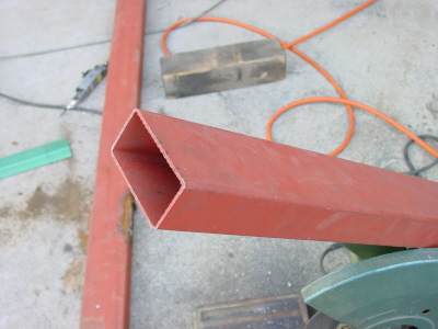 | ボディの一部に木が使ってあるのではなく、上の画像のようにドアの前後をつなぐサイドシルなどボディの数箇所は完全に木でつながっている状態ですので、気軽に抜くわけにはいきません。 結局、車体をゆがませずに木から鉄骨に入れ替えるため、車内は左のような緊縛状態になってしまいました(笑)。 不思議なことにこの作業をしていると川原のフェンスがどんどん短くなっていくんですが何故でしょうか?(謎) 苦労の甲斐あってフォークリフトで上げても車体形状を維持できるカッチリしたボディができました。 そして入れ替える鋼材は、オリジナルの木材の厚み(45ミリ)に最も近い↓画像の100x50MMをつかうことにしました。 定尺5Mを2本購入。 |