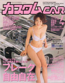 2003年3月1日、ついにカスタムCAR誌 2003年4月号でメジャーデビュー!! モノコックボディにフレームを入れ、フルノーマルボディにナロードデフ、現在の流行ではありえない小径極太ホイールをフェンダー内にツライチで収めるという、頭悪すぎる(笑)前代未聞の大謎なスタイルでカスタム界騒然(笑) |